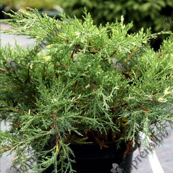 Можжевельник средний 'White Splash' — декоративный хвойный кустарник с оригинальной пестрой окраской хвои. Отличается раскидистой, стелющейся формой кроны и умеренным темпом роста. Основная декоративная ценность заключается в сочетании зеленой и кремово-белой хвои, создающей эффект 'брызг'. Хорошо подходит для создания цветовых акцентов в ландшафтных композициях, рокариях и альпинариях. Растение достаточно неприхотливо и устойчиво к городским условиям.