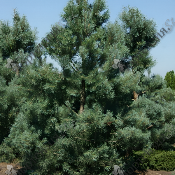 Сосна мелкоцветковая (Pinus parviflora) Глаука - вечнозеленое декоративное дерево. В молодости колонновидное, с возрастом с широкой, живописной, рыхлой кроной с асимметричными ярусами веток. В нижней части кроны ветви слегка свисающие. Медленнорастущее растение высотой 5 м, и до 5 м шириной. Годовой прирост в высоту 15 см, в ширину 10 см. В молодости одинакова в высоту и ширину. Молодые побеги зелено-коричневые, позднее светло-серые, кора черно-серая. Хвоинки изогнуты и закручены, собраны в пучки по пять штук, голубовато-зеленые, нежные, на концах побегов в виде кисточки, интенсивно голубовато-синие.