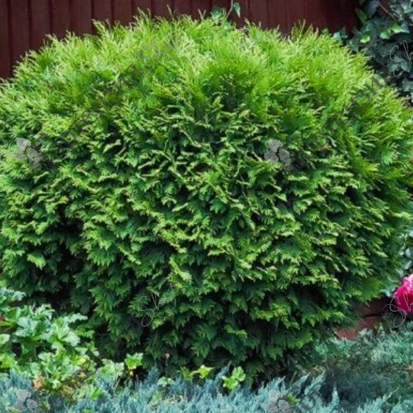 Туя западная  'Литтл Гиант ' - карликовый медленно растущий кустарник с шаровидной формой кроны. Хвоя: густая, ярко-зеленая летом, зимой- с бурым оттенком. Не рекомендуются посадки в местах с сильными, иссушающими воздух и почву ветрами. Используется для солитерной и групповой посадки, при создании аллей и живых изгородей. Туи хорошо выдерживают формовочную стрижку, поэтому являются материалом для создания оригинальных топиарных форм.