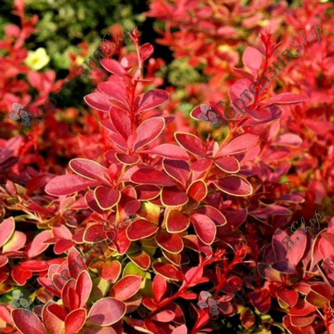 Барбарис Тунберга (Berberis thunbergii) 'Корал ' -оригинальный колючий кустарник.,Молодые листья – кораллово-красного цвета, позднее перерастают в красно-розово-малиновые тона с красивой зелено-золотистой каймой Глубокий кораллово-красный цвет и окантовка сохраняется до поздней осени в течение всего сезона. Лучше развиваются на свету, но переносят и некоторое затенение. Сорт склонен к позеленению листьев от недостатка света, а так же в условиях затенения побеги вытягиваются, крона теряет форму. переносит морозы до -39-40  Устойчив к болезням и вредителям Подходит для: смешанных, древесно - кустарниковых групп, миксбордеров, композиций с травянистыми растениями, отдельными экземплярами, как солитер, для создания низких стриженных и свободнорастущих изгородей и бордюров.