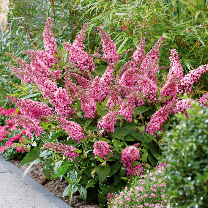 Сорт из новой серии буддлеи Butterfly Candy компактный размер, очень обильное цветение; идеально подходит для контейнеров и небольших садов.Куст очень компактного размера с аккуратной округлой формой. Цветки имеют легкий сладкий аромат и очень привлекательны для бабочек и пчел. Красиво цветет розовыми колосовидными соцветиями, привлекающими бабочек. Предпочитает солнечные места, защищенные от ветра и сквозняков. В июле-августе на стеблях развивается множество цветков ярко-розового цвета.