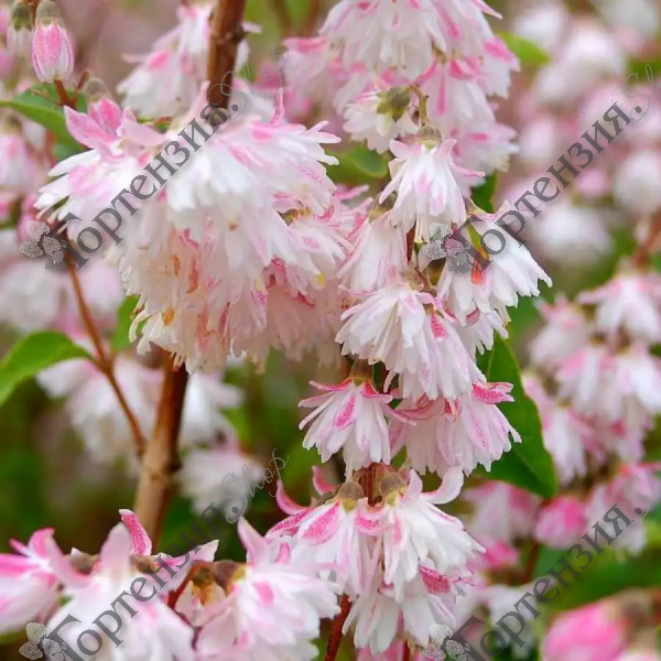 Дейция (Deutzia )Розеа Плена это один из красивейших сортов среди дейций. Главное достоинство RoseaPlena – это многочисленные красивые соцветия из нежных бело-розовых цветков, которыми можно любоваться в июле-августе.