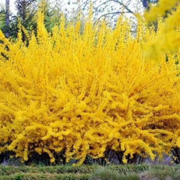 Форзиция промежуточная Курталин (Forsythia intermedia Courtalyn) Раскидистый кустарник, достигающий около  1,5 м высоты. Цветки большие, жёлтые, цветёт обильно в апреле. Цветёт регулярно и обильно сразу после схода снега, апреле-мае, до распускания листьев. Листья ярко-зелёные. Хорошо растёт на солнечных местах и достаточно влажных почвах. Рекомендуется для приусадебных участков,  городских садов, парков.