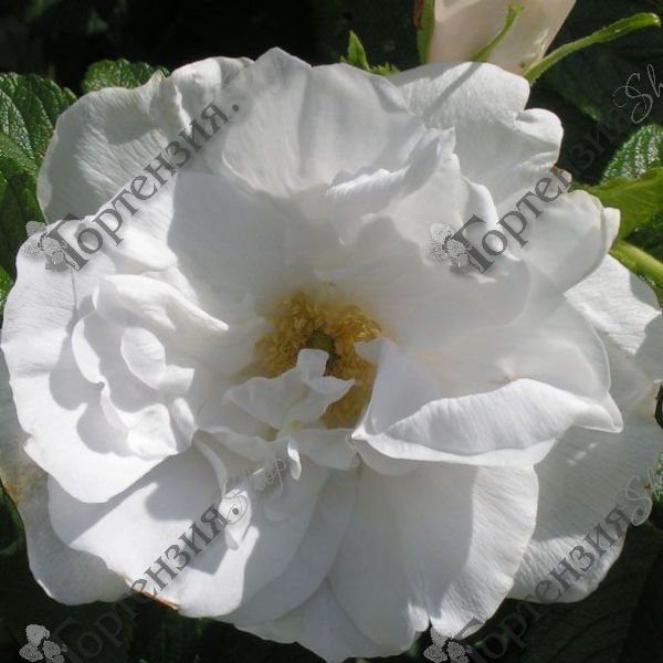 Роза Ругоза 'Blanc Double de Coubert' - кустарник цветущий, прямостоящий, сильнорослый. Листья темно-зеленые, морщинистые, непарноперистые, Цветки крупные(10 см), полумахровые (10-20 лепестков), белые, ароматные. Цветение раннее, повторное с июня по сентябрь. Осенью появляются яркие, крупные плоды, и продолжается цветение Почвы предпочитает плодородные, гумусированные, влажные. В ладшафте используют в одинойчной и групповой посадке или как элемент живой изгороди. Морозостойкость до -34С.