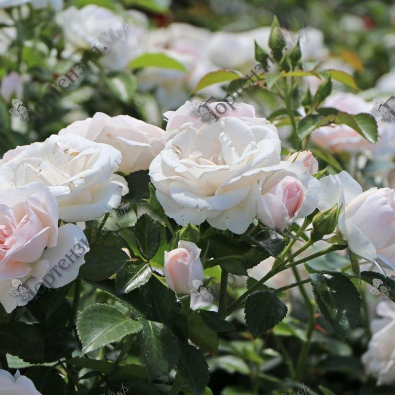 Роза полиантовая 'Aspirin' (Rose polyantha 'Aspirin') - махровые цветки окрашены в белый цвет. Цветы довольно крупные, имеют чашевидную форму из примерно 25 лепестков. Располагаются в крупные соцветия до 15 шт . Обладает легким непринужденным ароматом. Повторно цветущая, почти непрерывное цветение. Куст высотой 80-100 см, густой, листки матовые, зелёные. Растения устойчивы к болезням.  Ей требуется солнечное место, хорошо дренированная почва и регулярный полив. Подкормки в течение сезона также будут очень полезны для обильного цветения. Обрезка проводится весной, удаляются слабые и поврежденные побеги. Осенью рекомендуется укоротить куст перед укрытием на зиму, особенно в регионах с суровыми зимами. Она прекрасно смотрится в различных композициях. Её можно использовать для создания бордюров, высаживать группами на клумбах, комбинировать с другими цветами и декоративными кустарниками. Она также отлично подходит для контейнерного выращивания на балконах и террасах и для срезки.