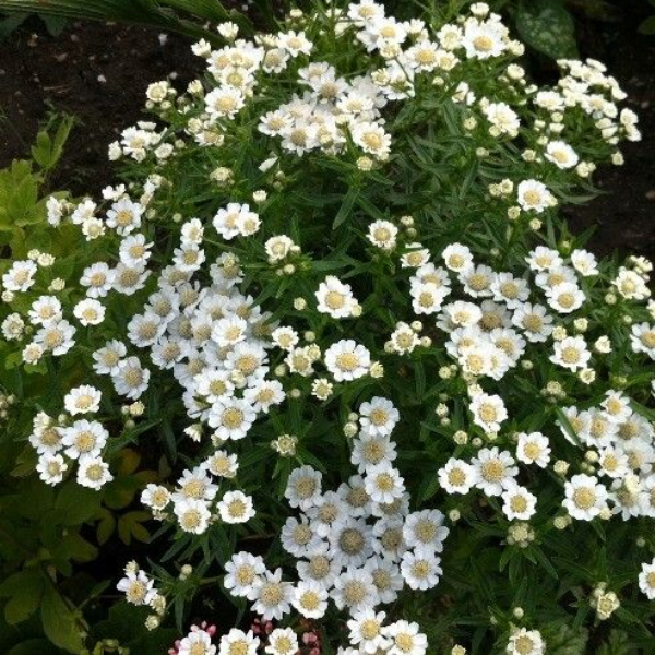 Тысячелистник птармика "Nana Compacta"- компактный куст, очень густой. Стебли прямостоячие с большим количеством листьев. В высоту может достигать до 30 см. Цветки-корзинки крупные, ослепительно белого цвета. Растение предпочитает солнечные места и хорошо дренированные почвы. Хорошо переносит холода и засуху. Не боится вредителей и болезни. Используется для групповой посадки в рокариях, миксбордерах, а также в цветущих садах, где имеются другие многолетники.